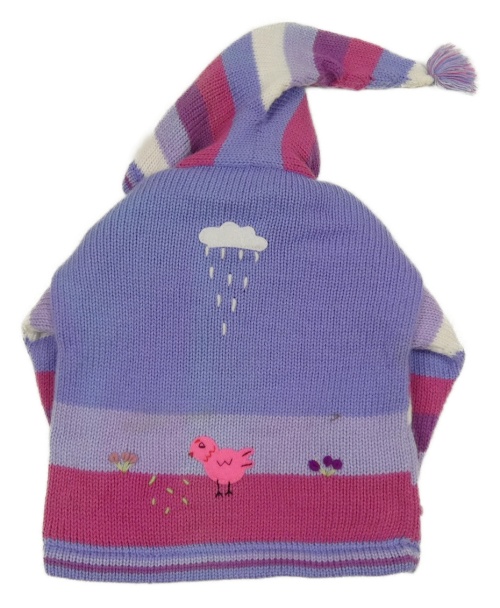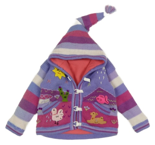 Fialovo-růžový podšitý propínací svetr s obrázky a kapucí