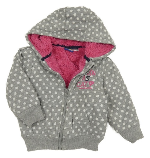 Šedá puntíkatá propínací zateplená mikina s nápisem a kapucí Lupilu