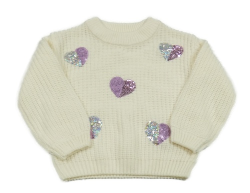 Smetanový žebrovaný pletený svetr se srdíčky z flitrů C&A