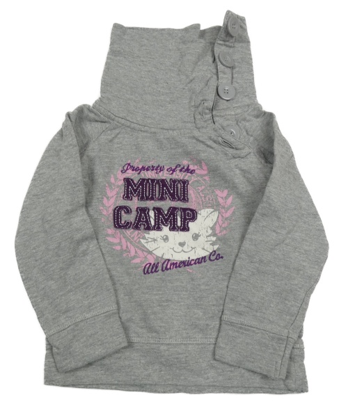 Šedá melírovaná mikina s kočičkou a nápisy a komínovým límcem