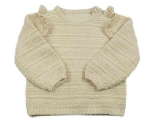 Smetanový žebrovaný svetr se třpytkami a volánky Nutmeg