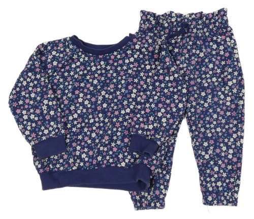 2Set - Tmavomodrá kytičkovaná oversize mikina + paper bag tepláky George