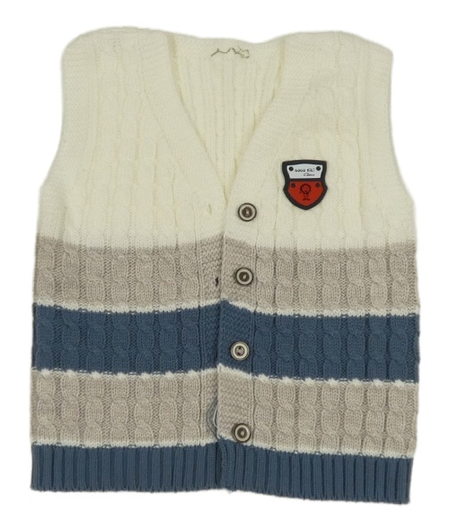 Smetanovo-modro-šedá vzorovaná propínací pletená vesta