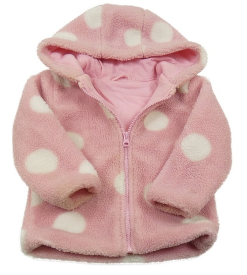 Růžová puntíkatá huňatá podšitá propínací mikina s kapucí Dunnes