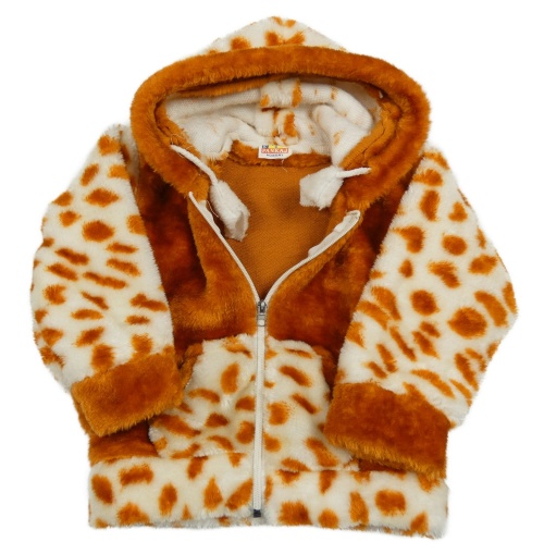 Medovo-bílá vzorovaná chlupatá bunda s kapucí