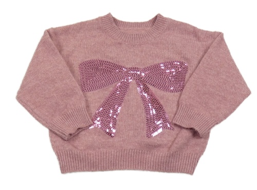 Růžový svetr s mašlí z flitrů Matalan