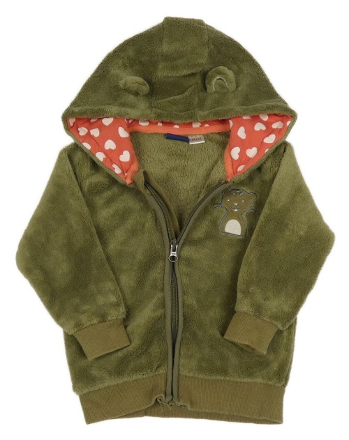 Khaki chlupatá propínací mikina s kočkou a kapucí Lupilu