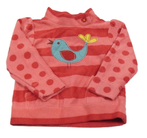 Červeno-růžová pruhovaná fleecová mikina s ptáčkem a puntíky M&S