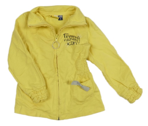Žlutá propínací mikina s nápisem a srdíčky