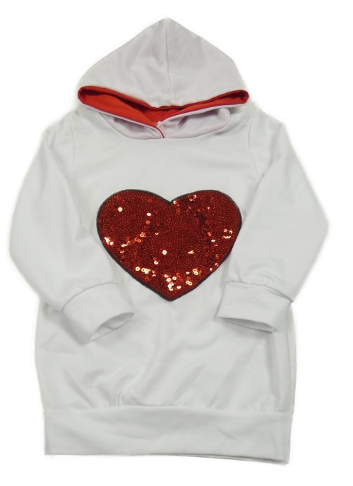 Bílá lehká mikina se srdcem z flitrů a kapucí