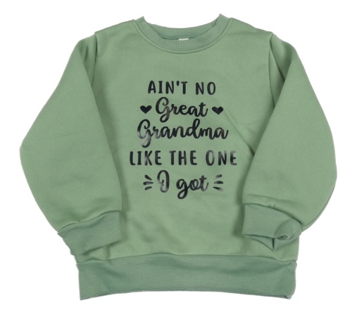 Khaki teplá mikina s nápisy a srdíčky