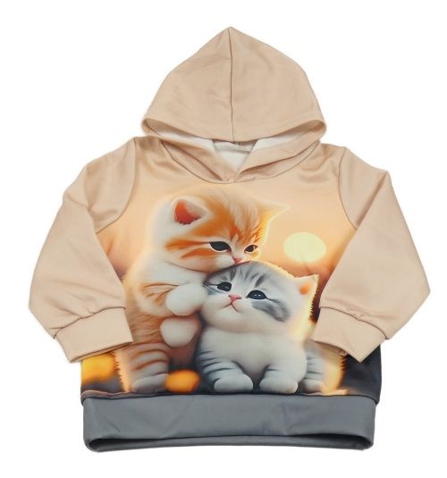 Světlerůžová mikina s kočičkami a kapucí