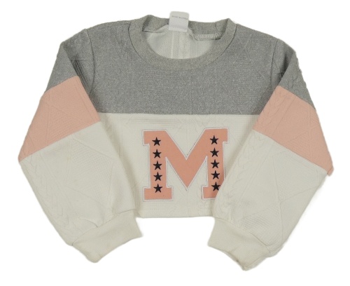 Šedo-bílo-růžová 3D vzorovaná crop mikina s písmenem