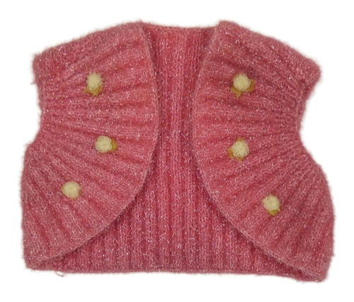 Růžová žebrovaná chlupatá třpytivá vesta s 3D květy