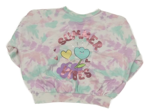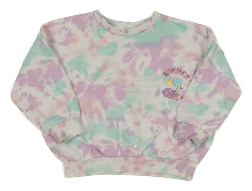 Bílo-růžovo-světlemodrá batikovaná mikina s květy Matalan