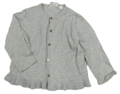 Světlešedý melírovaný propínací s volánkem svetr ZARA