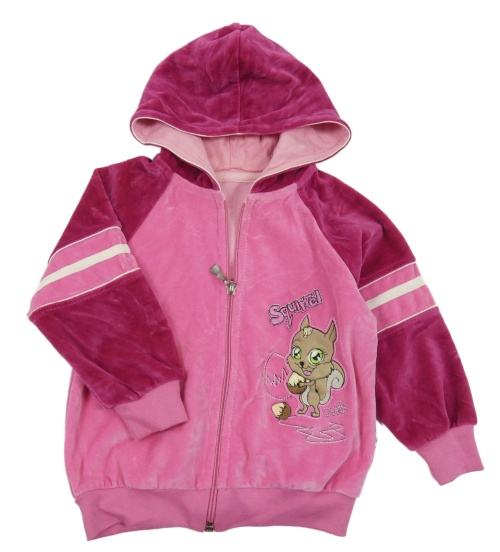 Růžovo-fuchsiová sametová propínací mikina s veverkou a kapucí