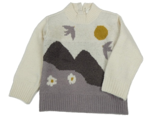 Smetanovo-hnědý vlněný svetr s horami a sluncem H&M