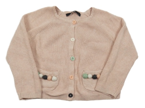 Světlerůžový propínací lehký svetr s kapsami s bambulkami George
