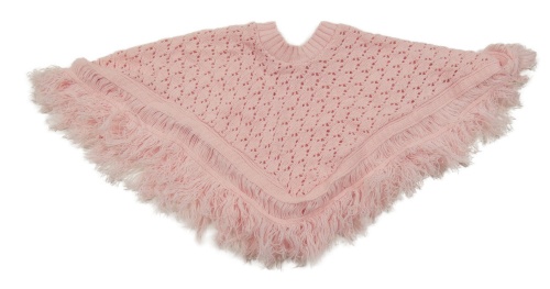 Světlerůžové pletené perforované pončo s třásněmi