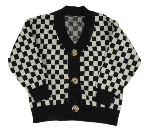 Černo-bílo/světlešedý kostkovaný pletený propínací svetr
