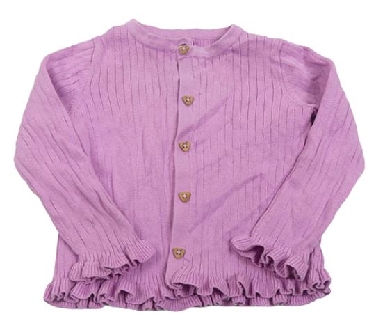Levandulový žebrovaný propínací svetr s volánky F&F