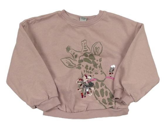 Starorůžovofialová oversize mikina s žirafou a překlápěcími flitry Tu