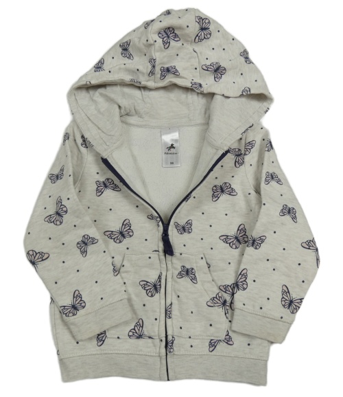 Béžovo-bílá melírovaná propínací mikina s motýlky a kapucí C&A