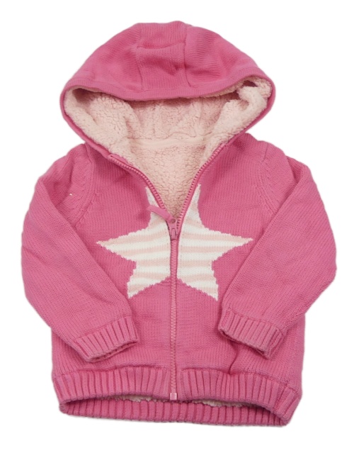 Růžový propínací zateplený svetr s hvězdou a kapucí