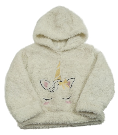 Smetanová chlupatá mikina s jednorožcem a kapucí Shein
