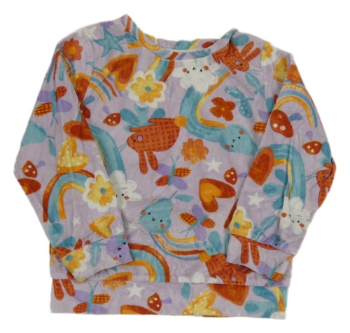 Lila květovaná plyšová mikina s králíky a motýly Tu