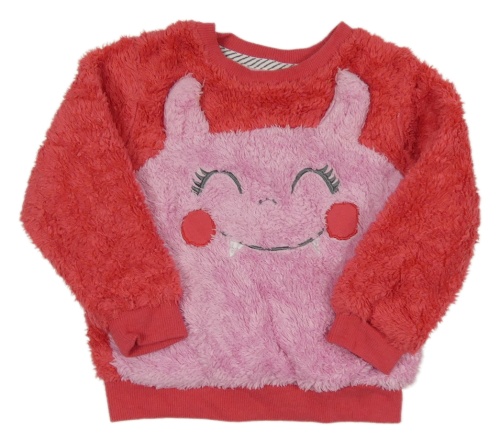 Růžová chlupatá mikina s příšerkou Tu