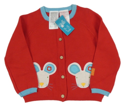 Nové - Červeno-modrý propínací svetr s myškami Blade Rose
