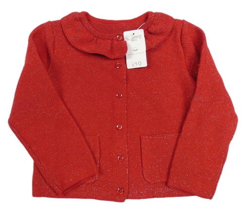 Nové - Červený třpytivý propínací svetr s volánkem Nutmeg