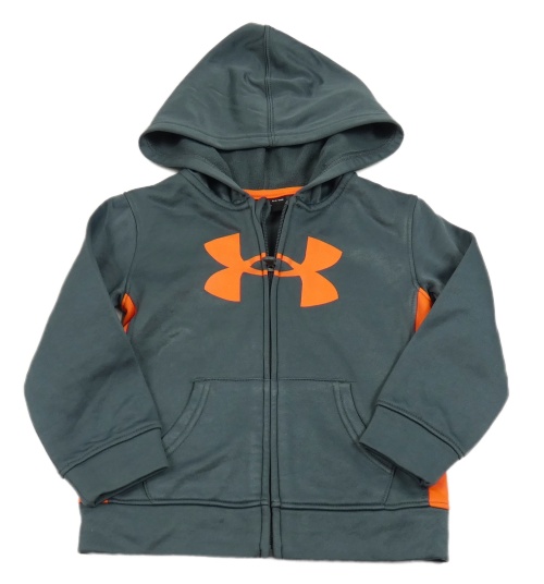 Tmavošedo-křiklavě oranžová funkční thermo propínací mikina s logem a kapucí UNDER ARMOUR