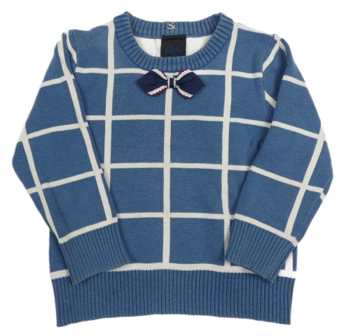 Tmavomodro-bílý kostkovaný svetr s mašlí
