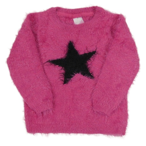 Růžový chlupatý svetr s hvězdou C&A