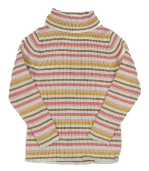 Bílo-hnědo-růžovo-žlutý pruhovaný žebrovaný svetrový rolák George
