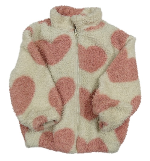 Světlebéžová huňatá propínací mikina se srdíčky Shein