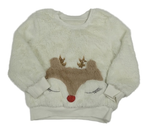 Bílá chlupatá mikina se srnkou Nutgmeg