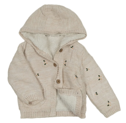 Bílo-bronzový třpytivý zateplený propínací svetr s kytičkami a kapucí Nutmeg