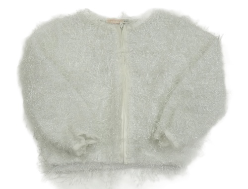 Bílá třpytivá chlupatá propínací mikina