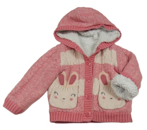 Růžový zateplený propínací svetr s kapsami s králíky a kapucí Nutmeg