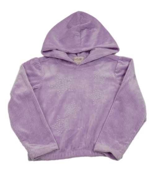 Lila sametová žebrovaná mikina s hvězdami a kapucí