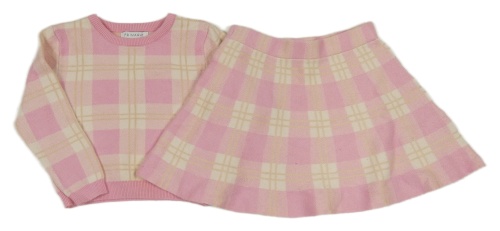 2Set - Růžovo-smetanovo-hnědý kostkovaný svetr + sukně PRIMARK