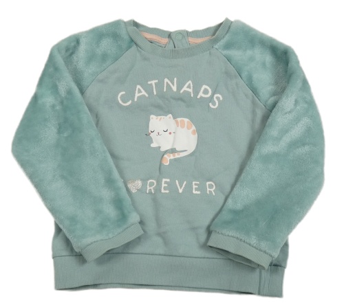 Zelená mikina s plyšovými rukávy a kočkou Baby club