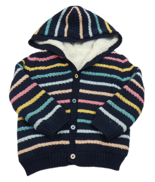 Tmavomodro-barevný pruhovaný perforovaný propínací zateplený svetr s kapucí George