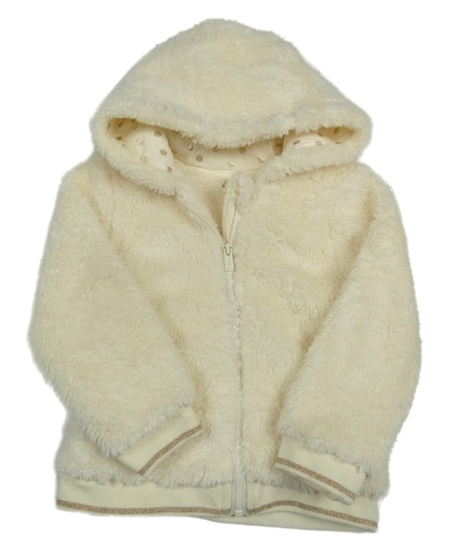 Krémová třpytivá chlupatá propínací mikina s kapucí Orchestra