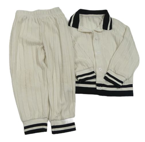 2Set - Bílo-černý žebrovaný úpletový propínací svetr + kalhoty SHEIN