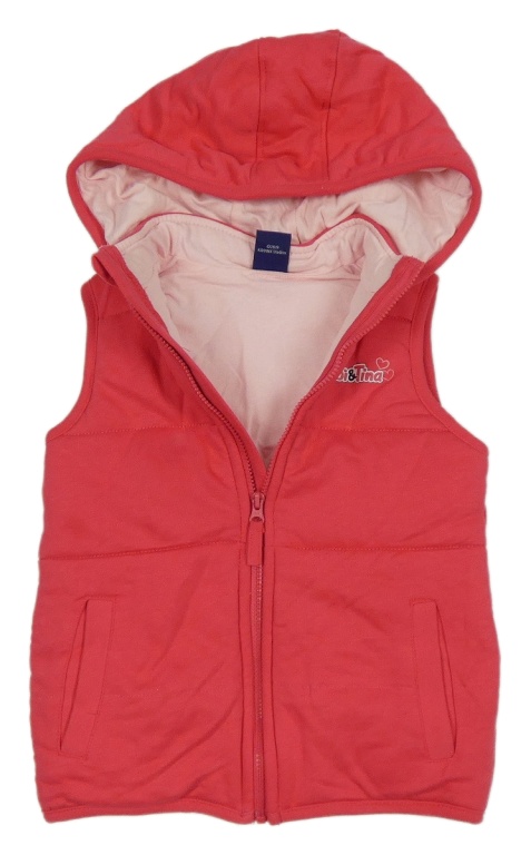 Malinová tepláková zateplená vesta s nápisem a kapucí